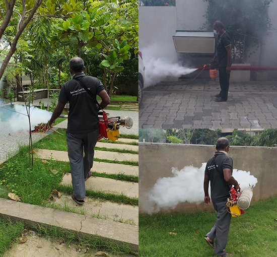 Mosquito fogging is a pest control technique used to reduce mosquito populations, primarily aimed at preventing the spread of mosquito-borne diseases like malaria, dengue, and Zika virus. The process involves spraying fine droplets of insecticide into the air to kill adult mosquitoes. It is often carried out in outdoor areas, especially during peak mosquito activity times (early morning or late afternoon). While effective for short-term control, fogging is typically part of a larger mosquito management strategy and must be used alongside methods such as eliminating standing water and larviciding.